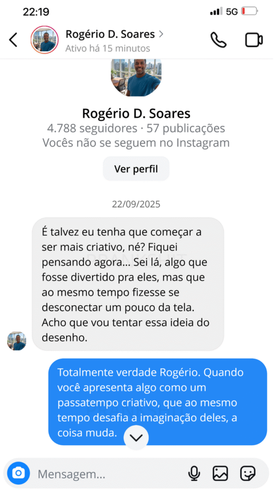 Muitos pais acreditam que é apenas “fase”, mas o excesso de estímulos digitais rouba a atenção, atrapalha a criatividade e até a forma como elas lidam com as emoções. Sem uma atividade saudável de expressão, elas podem se sentir desmotivadas e até inseguras sobre si mesmas.